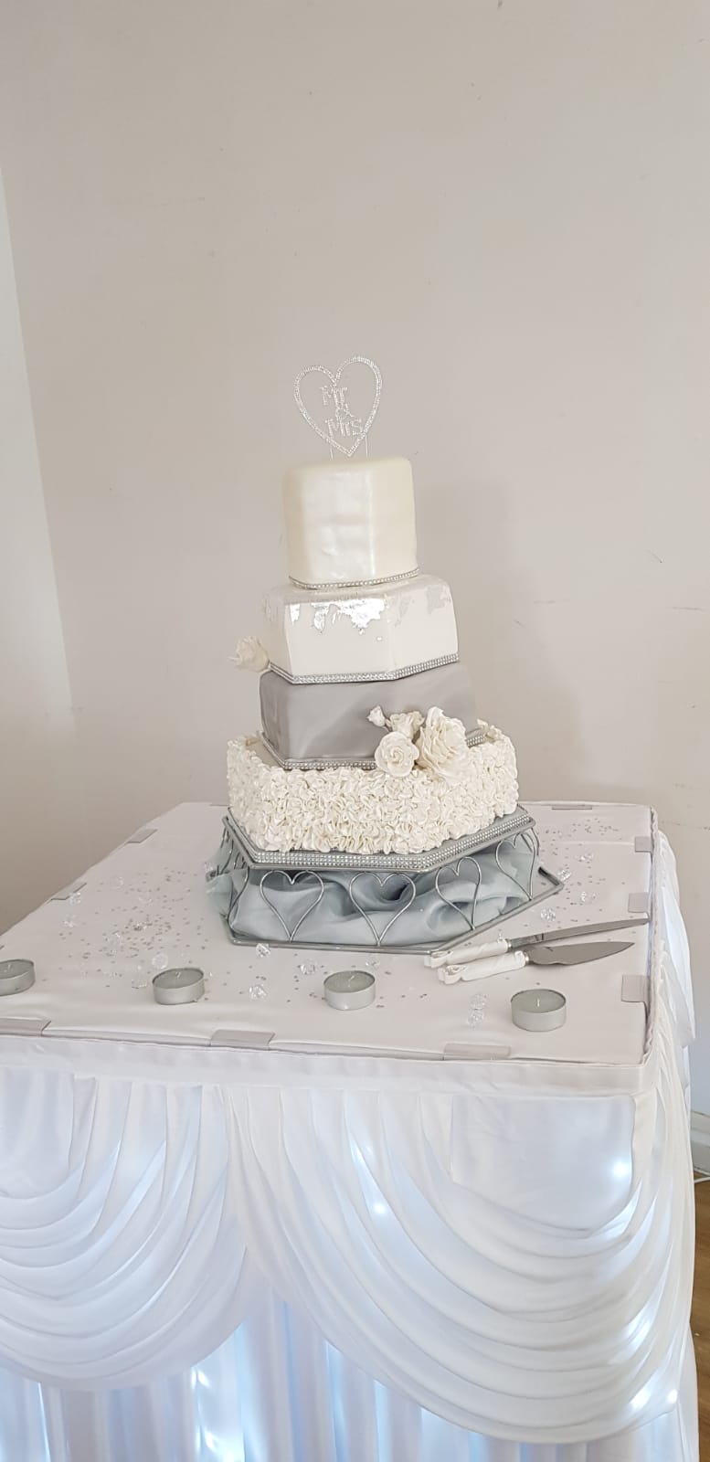 Debbie Padilla Dominguez made her first 4 tier wedding cake and it went down a treat. Each tier has a different colour or technique and we love the frills at the bottom.