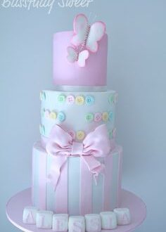 How adorable are these baby butterfly cakes? Both of the cakes have combined an elegant design with beautiful butterflies , to enhance the innocent, pretty and feminine look of the cake design. Using various different sized butterflies works really well in creating a life like flutter of butterflies! After all, butterflies come in all shapes and sizes – as do us!