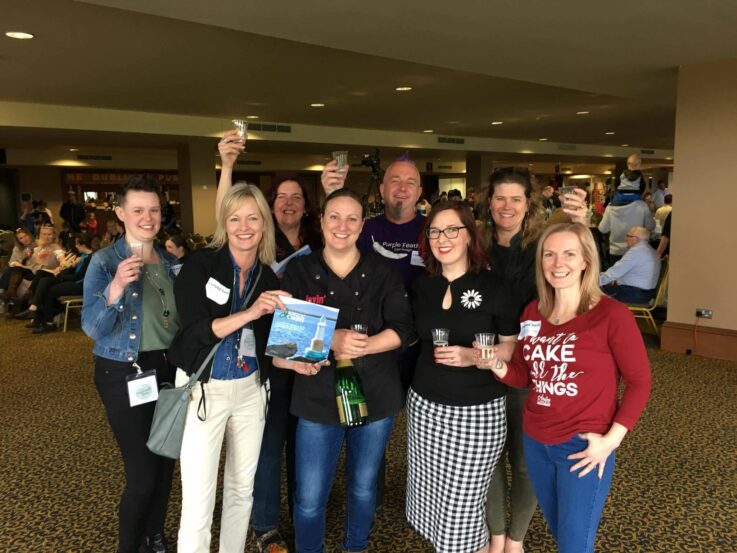 The Celtic Cakers Tutorial Book with the tutorial artists from left to right – Gail Porter of Lizzie May’s, Karen Geraghty of Bake Cake Create, Tanya Ross of Novel-T...