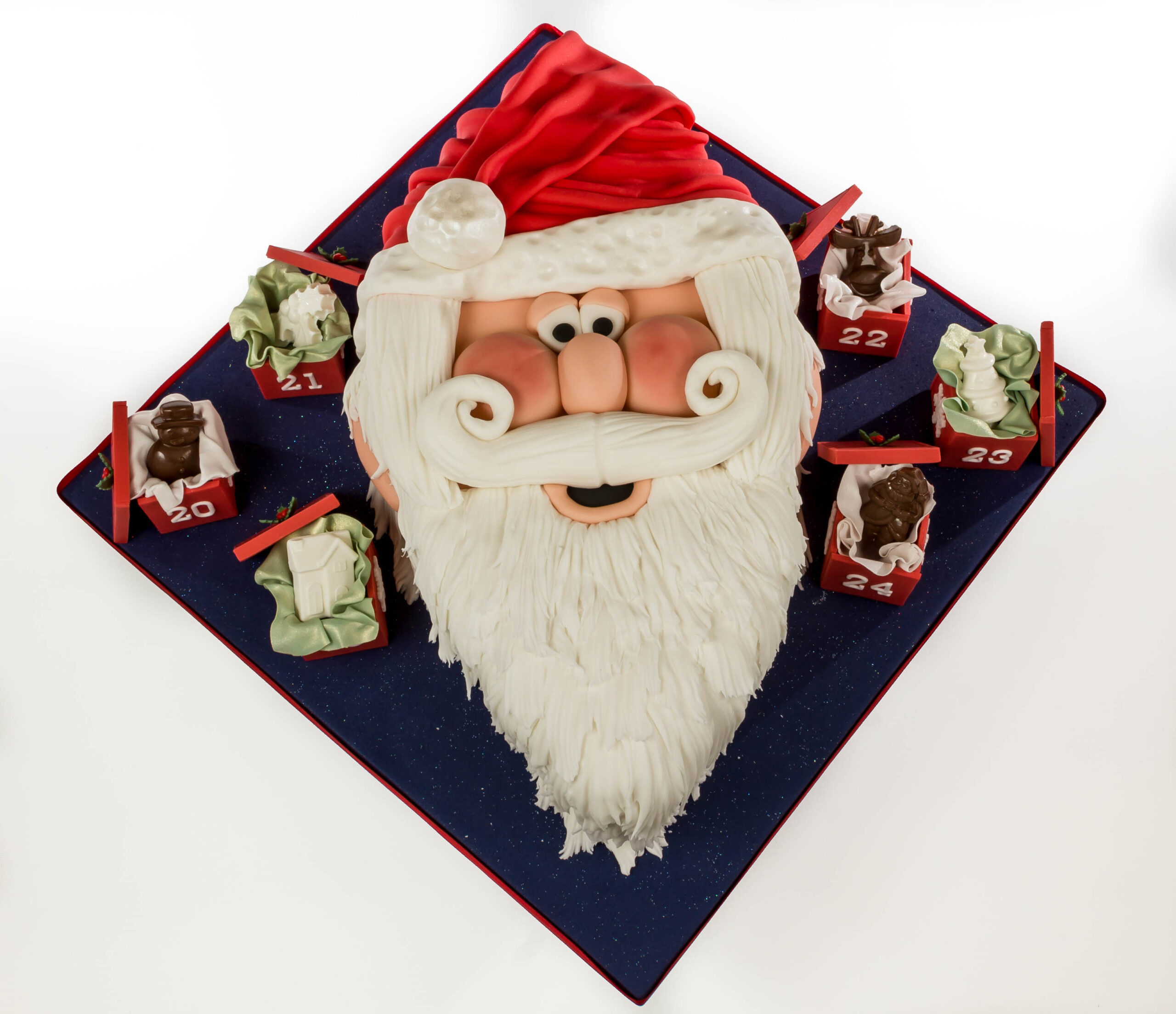 Julie had been a pro member of CakeFlix for a number of years, when she spotted the opportunity to collaborate with other members at Cake International in November 2016, in a members table display run by Paul and David. She was successfully chosen, as part of a group of 50 cake decorators, to create and display a Christmas themed cake, adapted from one of Paul’s tutorials. Julie chose to use the ‘Santa Face’ tutorial, from Paul’s ‘Decorating Christmas Cakes’ book, which she added her own twist to.