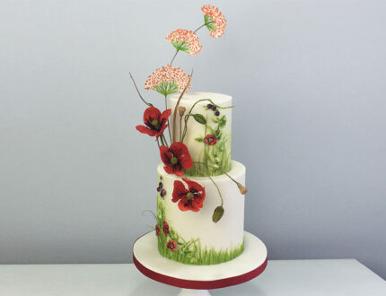 Create this stunning Autumn themed cake, with the warm colours of the Autumn countryside, blackberries, poppies , acorns and leaves captured in modelled sugar, set as a feature side design . Make bright red poppies, and grasses from flower paste and rice paper, which are all brought together in this totally captivating, detailed tutorial, which you can refere to for each of the specific skills lessons. Although the tutorial is for Intermediate to advanced level, be sure to be inspired for even the beginner can learn techniques to advance your skill level and set your sights on other skills to add to your learning goals.