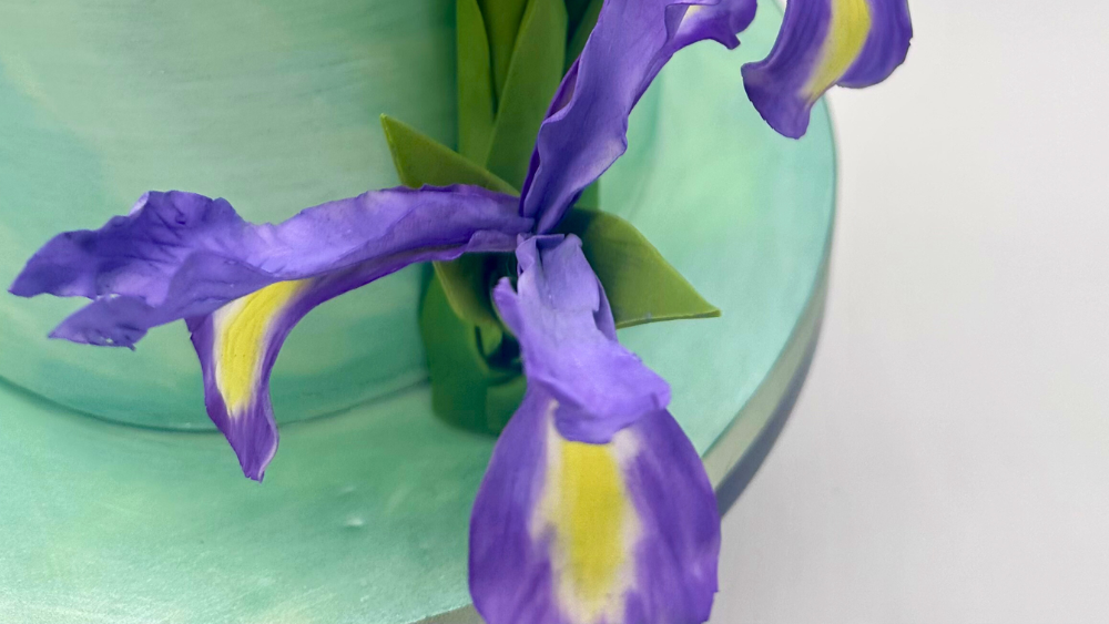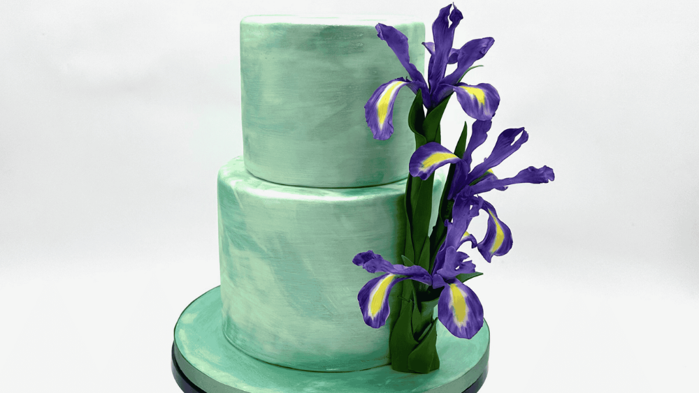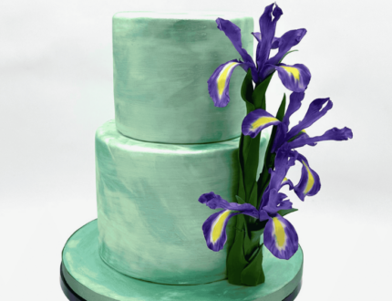 All that’s left to do is attach the irises and there you have it, a quick, effective, abstract iris wedding cake design.