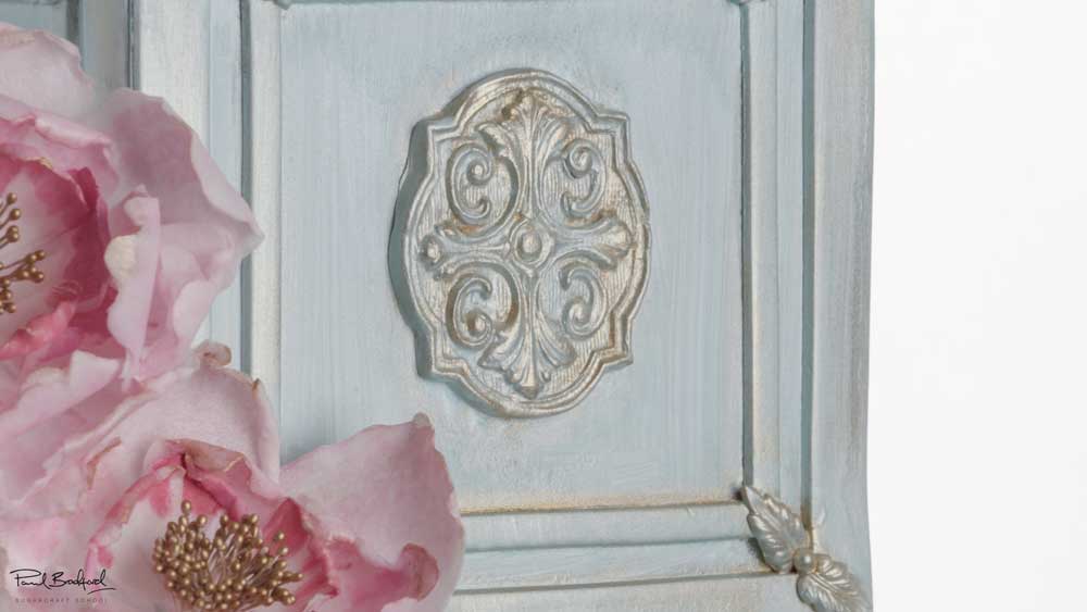 Now it’s time to add the lovely brushed gold look to all the decorations. Paul uses a smaller brush here and puts the dust on dry.