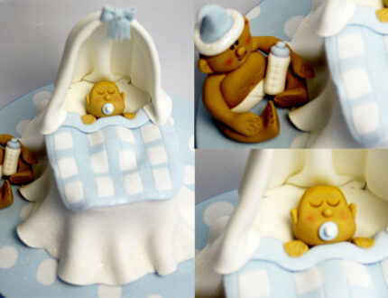 Baby in the Crib is excellent for christenings or similar ceremonies. Colours can easily be changed for a boy or girl and makes an excellent piece on its own or fantastic centrepiece on top of a cake. Skills learned here can be adapted to a number of similar designs.