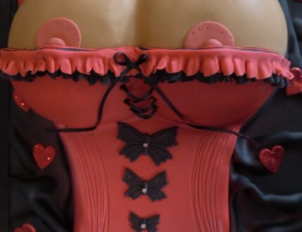 Straightforward cake with the big decision being nipples showing or not? Not everyone’s taste so if displaying it in your house or shop maybe do so discretely.