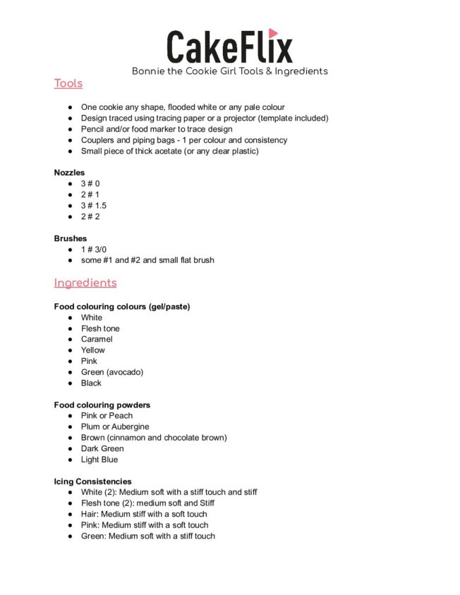 Bonnie the Cookie Girl Tools & Ingredients