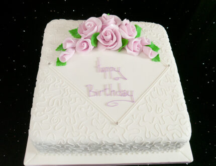 This more traditional design is an excellent cake for anniversarys or birthdays. It teaches neat piping work and here you see how Paul covers a square cake with buttercream and chocolate sugarpaste.