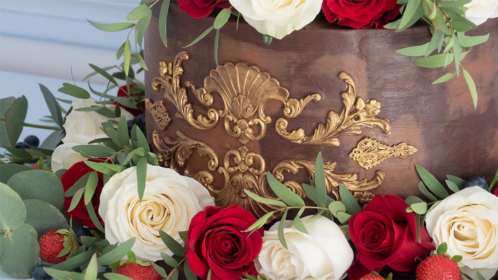In this lesson, Paul uses a variety of moulds to create the beautiful gold pattern you see spanning across each tier.