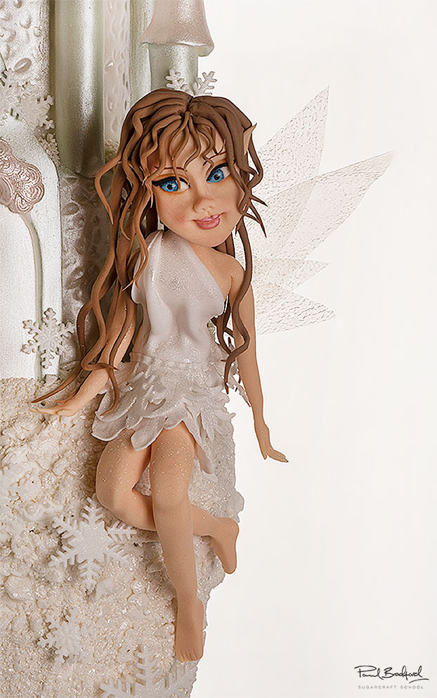 Paul adds some snowflakes to the cake to add more prettiness to the overall design, as well as blending the two halves together.