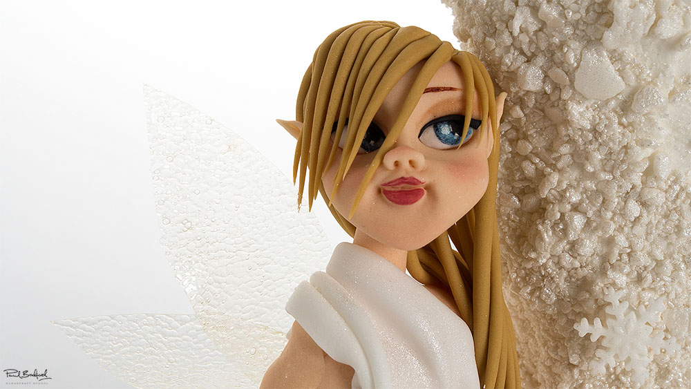 Paul starts on making the fairy’s head, using a lovely modelling paste, which you’ll find links for on the ingredients list below. Paul shows us some great techniques using various modelling tools to create delicate facial features.