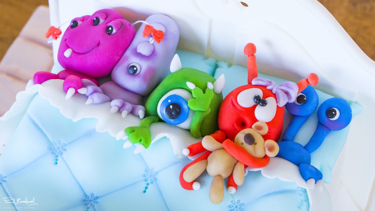 Brenda Walton of Sugar High teaches us how to create her fantastic Monsters in Bed Cake. A perfect cake for a birthday party, it can be customised with ease to create the perfect treat for a boy or girl’s celebration by adjusting the colours and the details on the quirky little monsters. Perfect for intermediate level decorators, this cake takes one full day to complete.