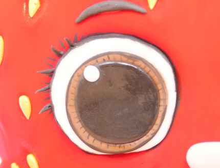 Paul now adds the eyes, eye lashes and mouth. If you struggle to see the close up of the eye features then use the image below as a reference.