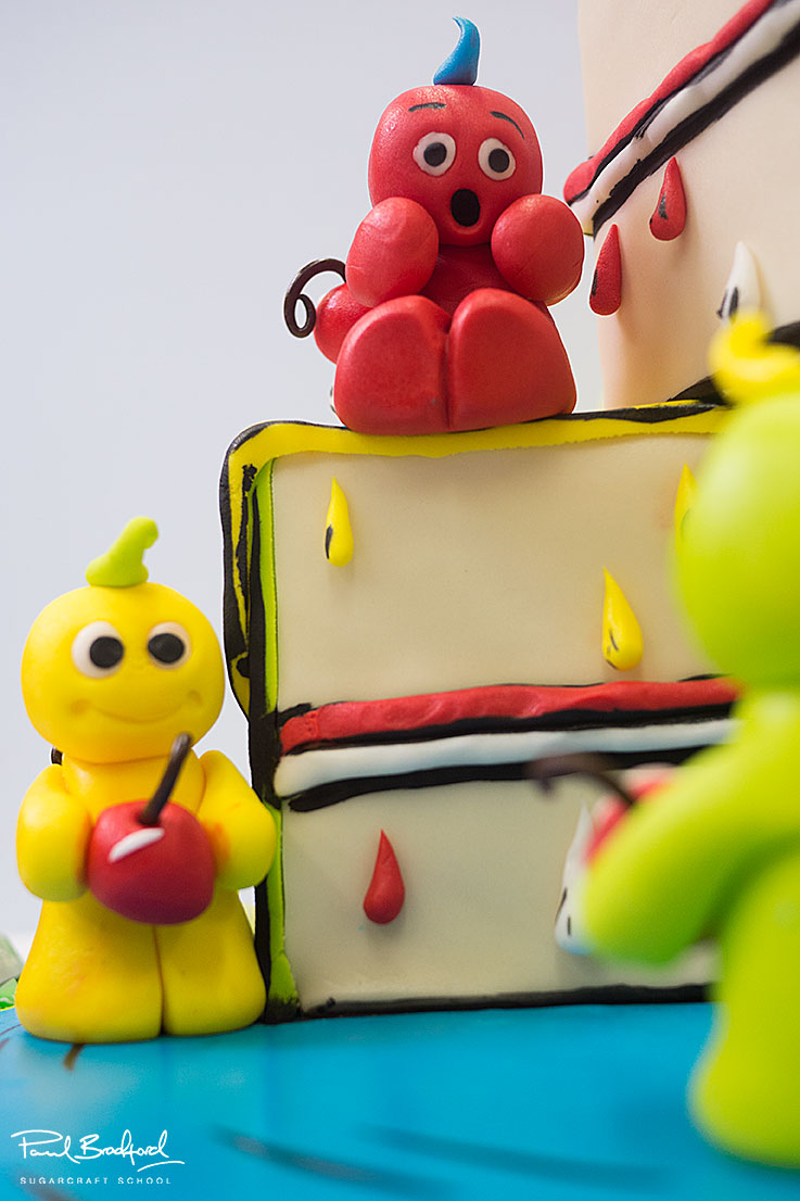 Here Karen begins to add some fun decorations using various colours of sugarpaste.