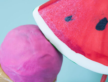 Raewyn finishes off the pie by adding a pie crust and then painting it in a lovely work yellow tone. She then covers the ice cream cone using an impression mat, which helps give the texture of an ice cream cone.