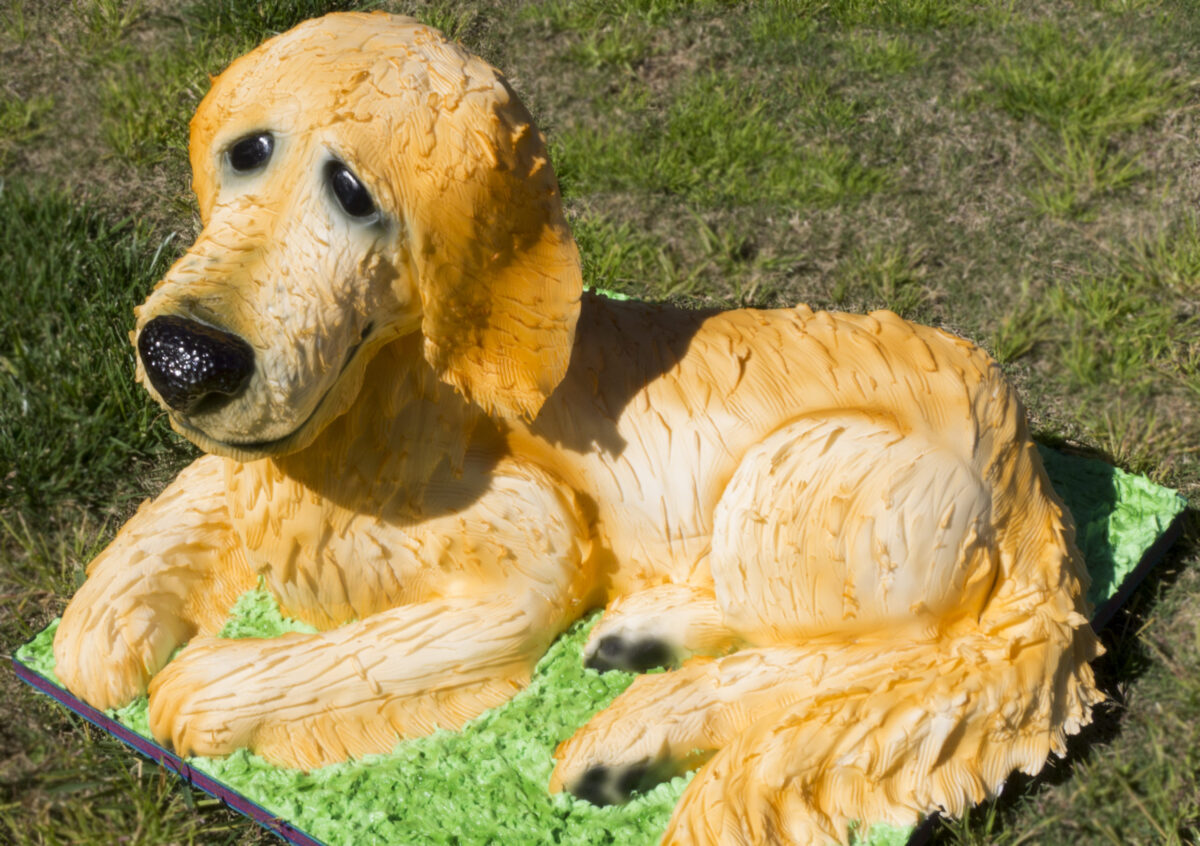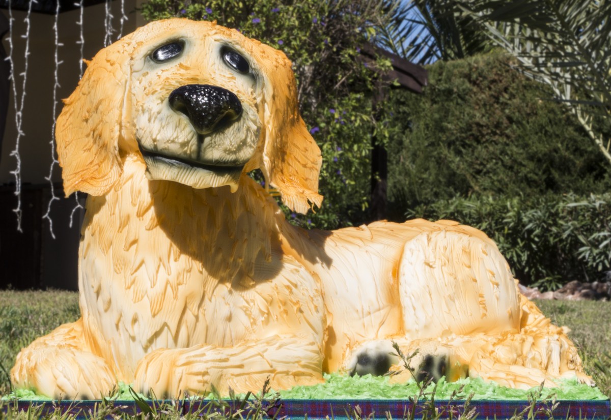 So far we have a rather large, dog shaped blank canvas. So Paul starts to work on the airbrushing of this cake and we can see it really coming alive!