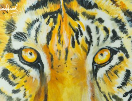Calli now starts to focus on the finer details around the Tiger such as the ground beneath it’s paws and face. She shows us how to create the illusion of depth of field by making the face feel more in focus than the foreground. She also shows us techniques for adding depth to colours and creating various shades.