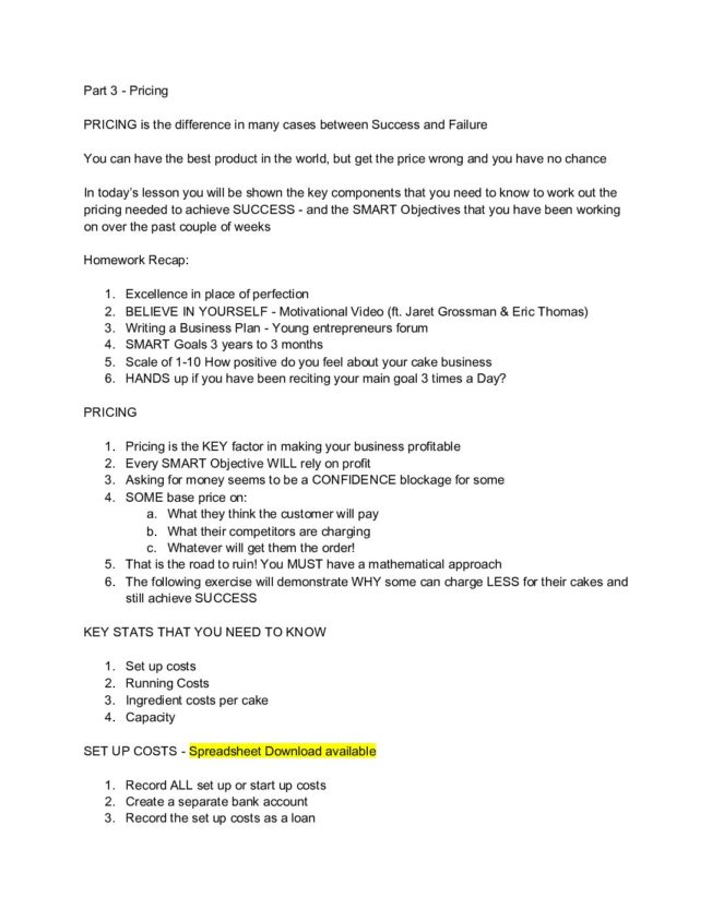 Chapter 3 – Pricing your cake