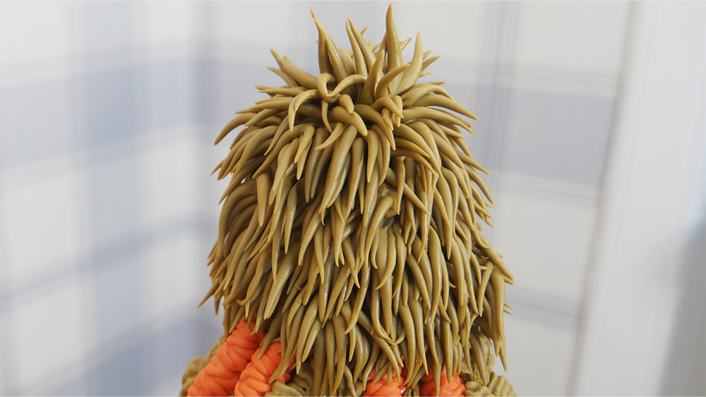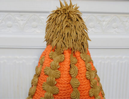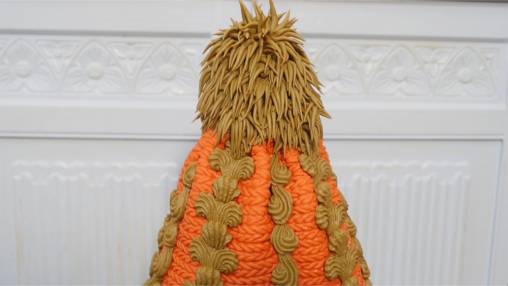 Paul now creates the brim of the hat, again using textured sugarpaste to keep the woolly effect going.