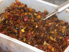 At Christmas my dear old mum used to make a friendship cake, this involved her seven neighbours bringing equal amounts of fruit to be soaked in whatever alcohol they had. The fruit would get steeped in a great big bowl and everyone would throw in a small amount of their favourite tipple. Different spices would also be added to this cauldron then tasted for flavour, from early summer until September the fruit would be stirred weekly until it gradually started to break down, releasing the most amazing aroma.