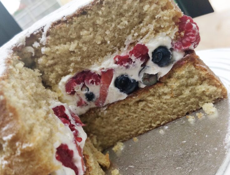 Interestingly, I found it rose a little more in the conventional oven, baked in less time, and I think had slightly straighter sides. This is something I’ll definitely be checking out in the future as I always use fan due to its promise of better heat distribution and shorter bake times. Even though this cake was the most full, it baked fully in 40 minutes in the conventional oven. In comparison, recipes 1 and 2 took between 40 and 55 minutes to bake despite being filled less. If I was going to make this as a deeper cake I would definitely use the conventional top and bottom heat instead of fan.