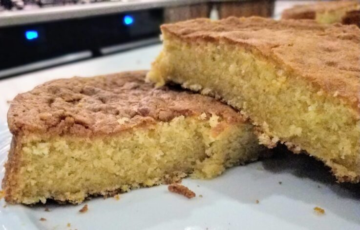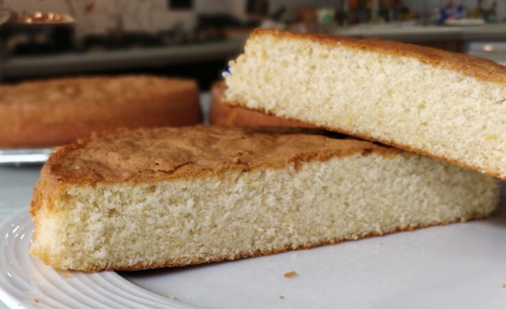 Ingredients: Flour, 390gm plain, or preferably 330plain/60 cornflour Caster sugar, 335gm Baking powder, 2tsp Bicarb of soda, 1tsp Salt, 1tsp Butter, 170gm Whole milk, 280gm Vege oil, 55gm Eggs, 3 Vanilla, 1tbsp.